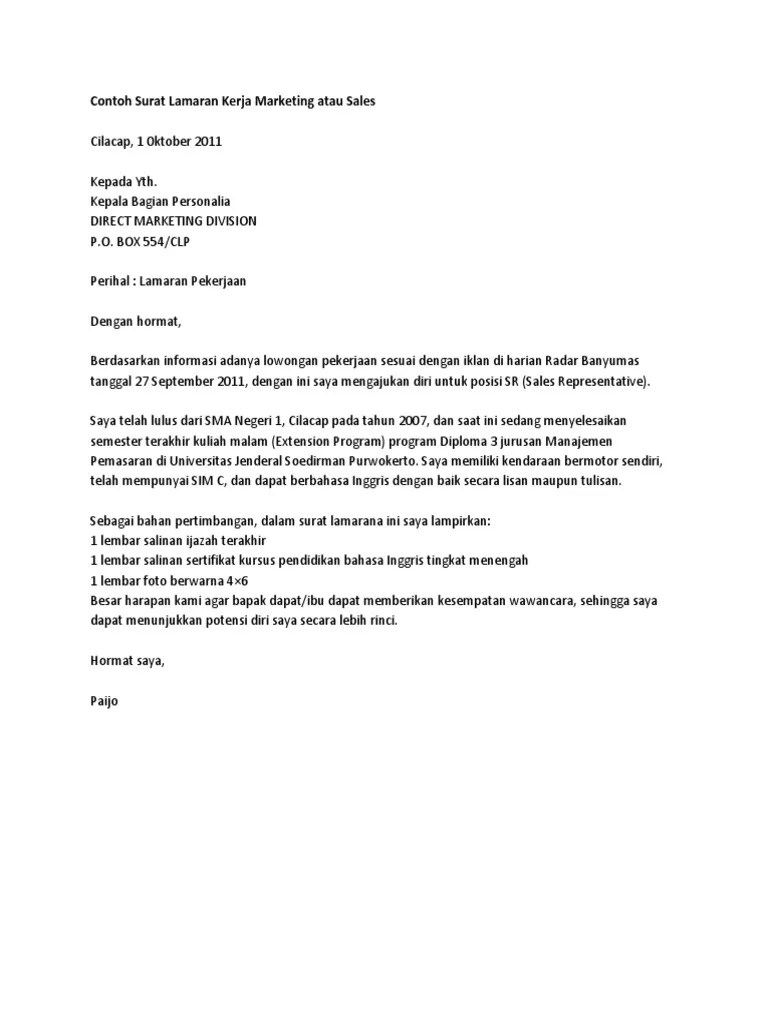 Surat lamaran kerja marketing executive / contoh surat lamaran kerja marketing yang benar marketing surat bahasa inggris / contoh surat lamaran kerja tanpa . Contoh surat lamaran kerja marketing/sales/kurir. Bedanya, saat ini lamaran kerja akan dikhususkan untuk melamar pekerjaan dengan posisi pemasaran. Hormat saya, susianti tanuwidjaja contoh surat lamaran kerja marketing/sales/kurir jakarta 25 mei 2011, kepada yth, hrd manager pt. Baik mereka yang baru lulus .
